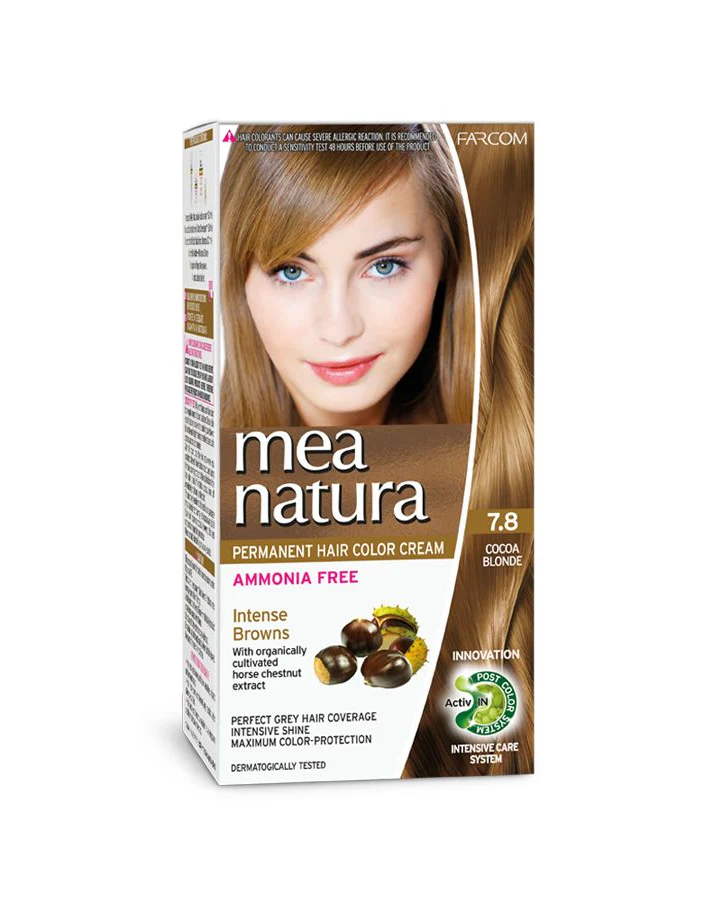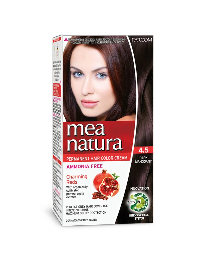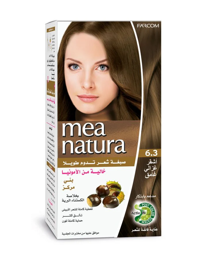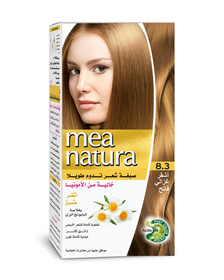 تقدم Mea Natura تركيبة احترافية لتلوين الشعر خالية من الأمونيا تحمي الشعر وتغذيه مع توفير نتائج نابضة بالحياة وطويلة الأمد. مع تغطية 100% للشعر الرمادي ومزيج من المكونات الطبيعية، يمكنك الحصول على لون شعر مذهل دون أضرار المواد الكيميائية القاسية.